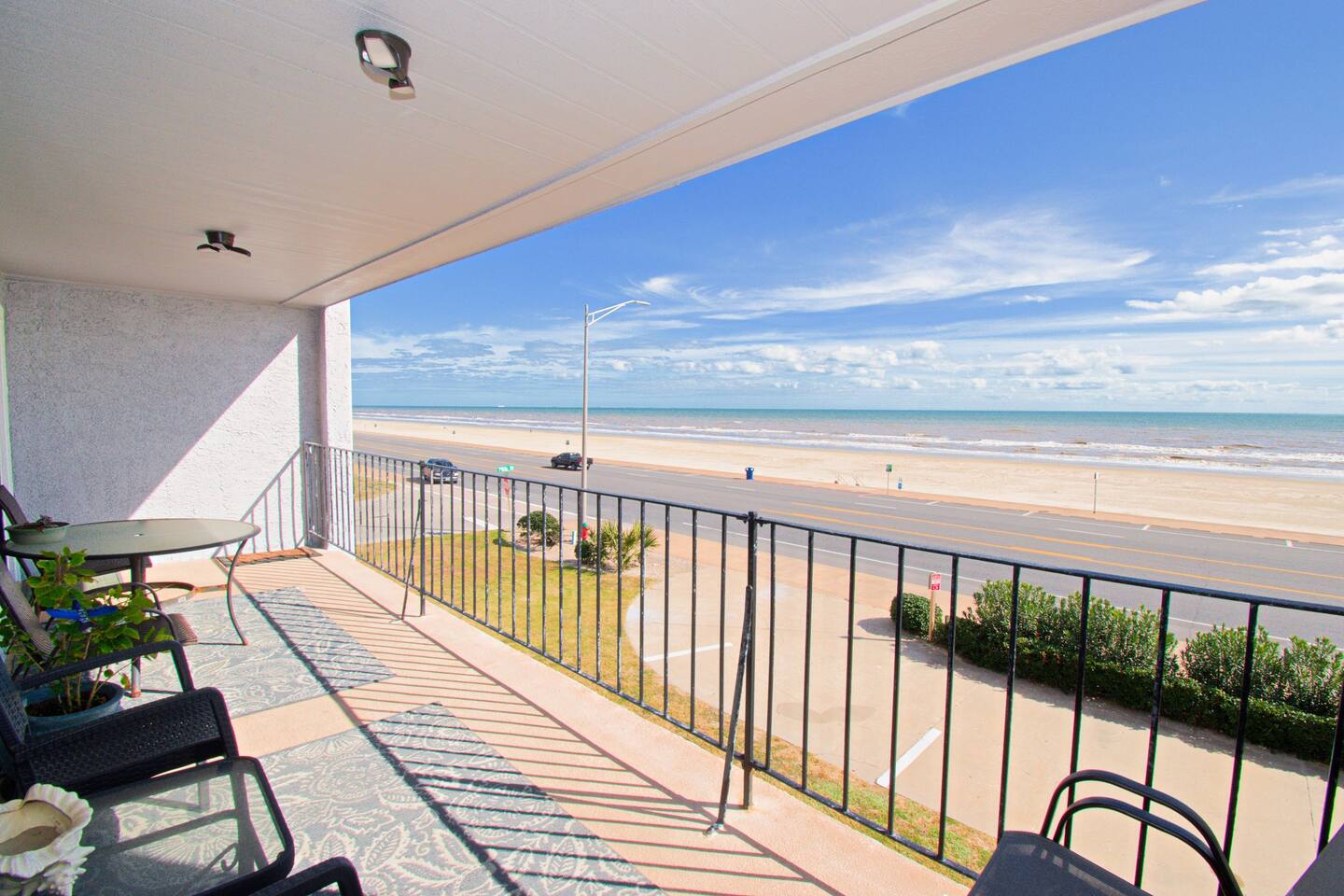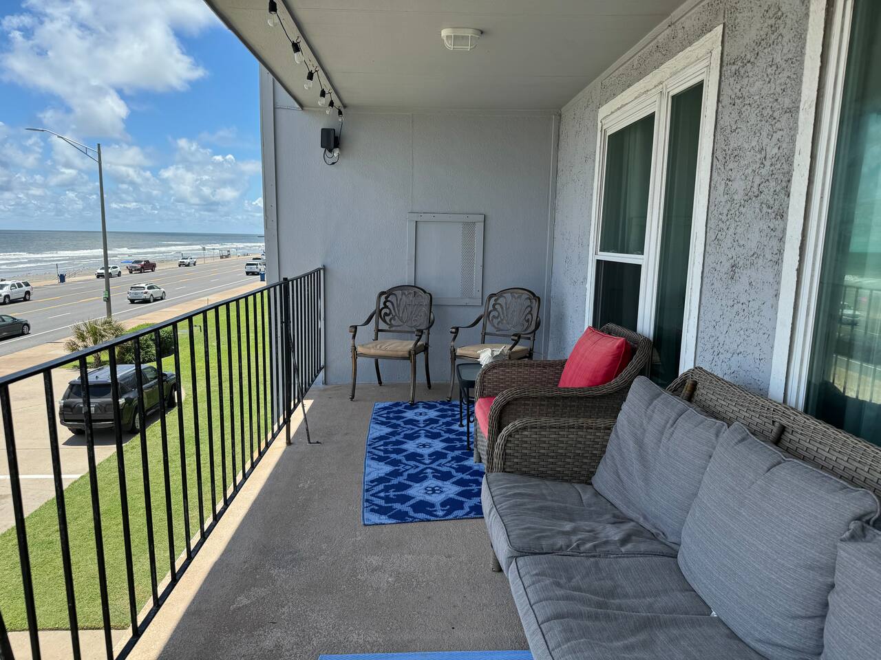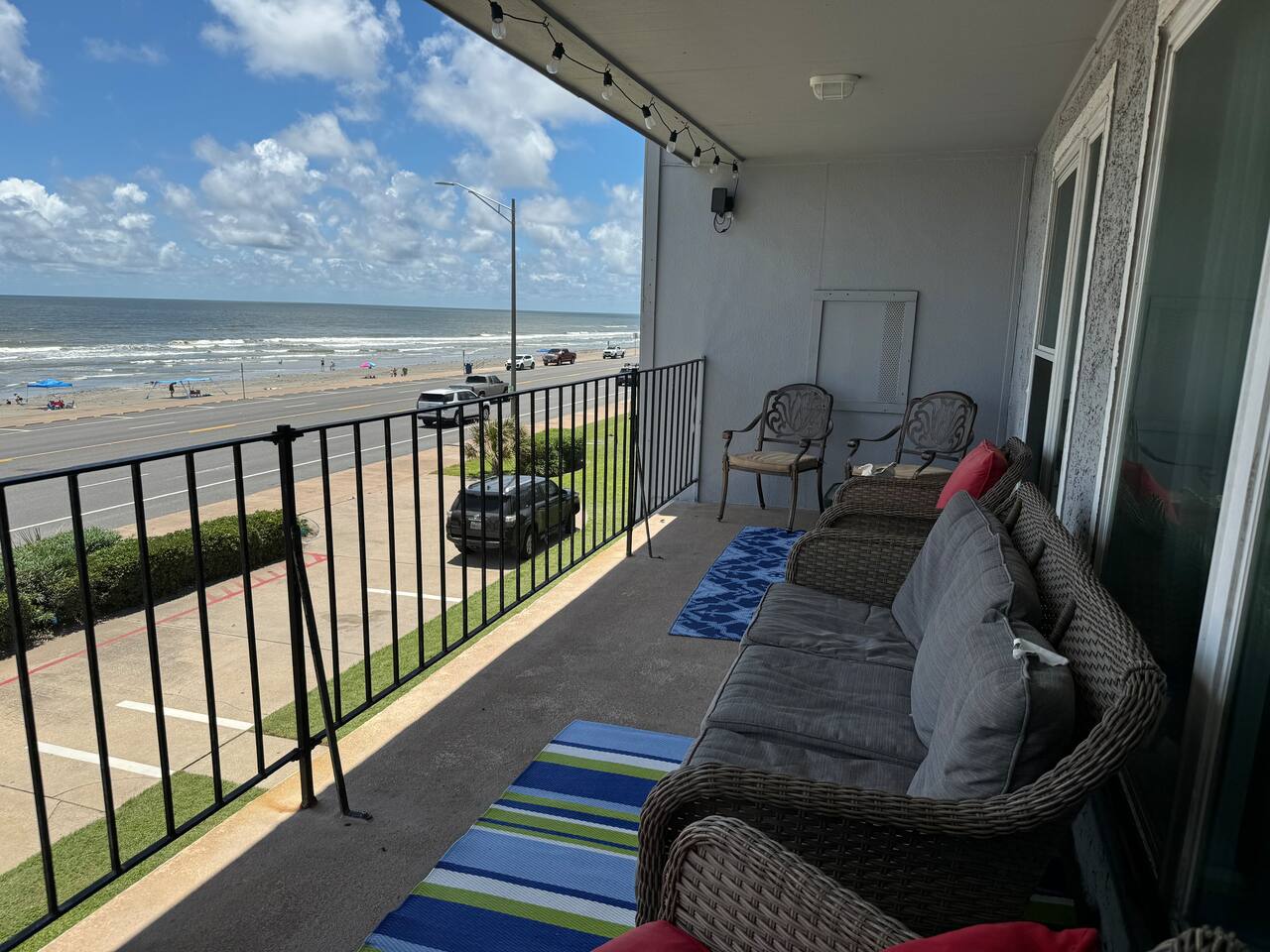 Oceanfront Condo with Stunning Views Enjoy your stay in our spacious 2-bedroom, 2-bath condo in Galveston. Take in ocean views from the balcony, living area, and primary bedroom while enjoying the amenities. There is a pool, a hot tub, tennis court/pickleball court , and BBQ area. 🌟Sleeps 6 🌟King bed 🌟queen bed 🌟sofa bed 🌟blow-up mattress 🌟Fully equipped kitchen 🌟Private furnished balcony 🌟Beach gear included – Towels, wagon, chairs, umbrella, ice chest