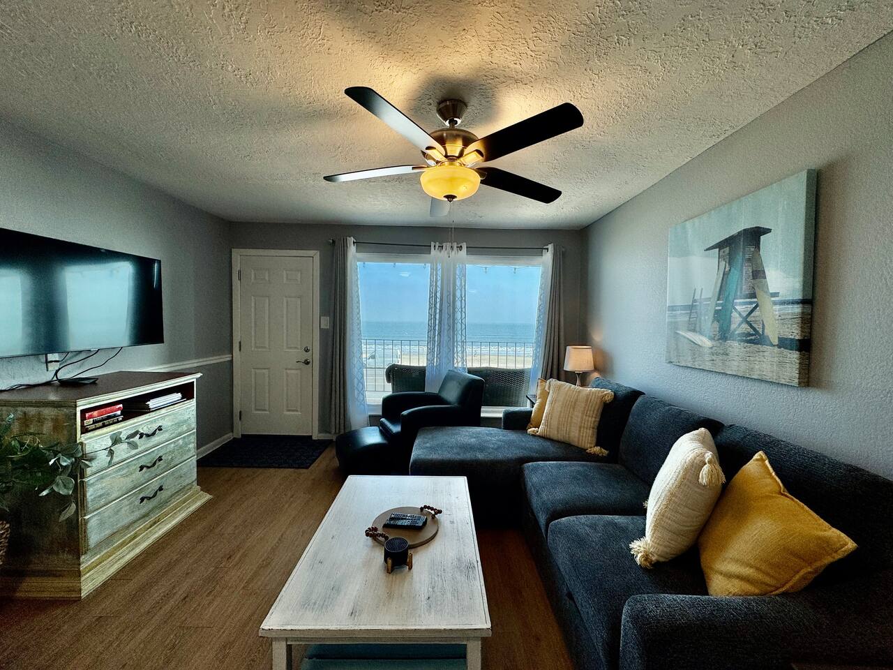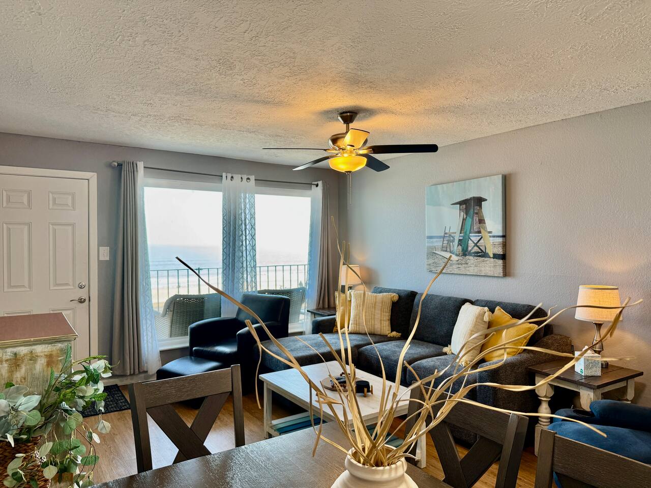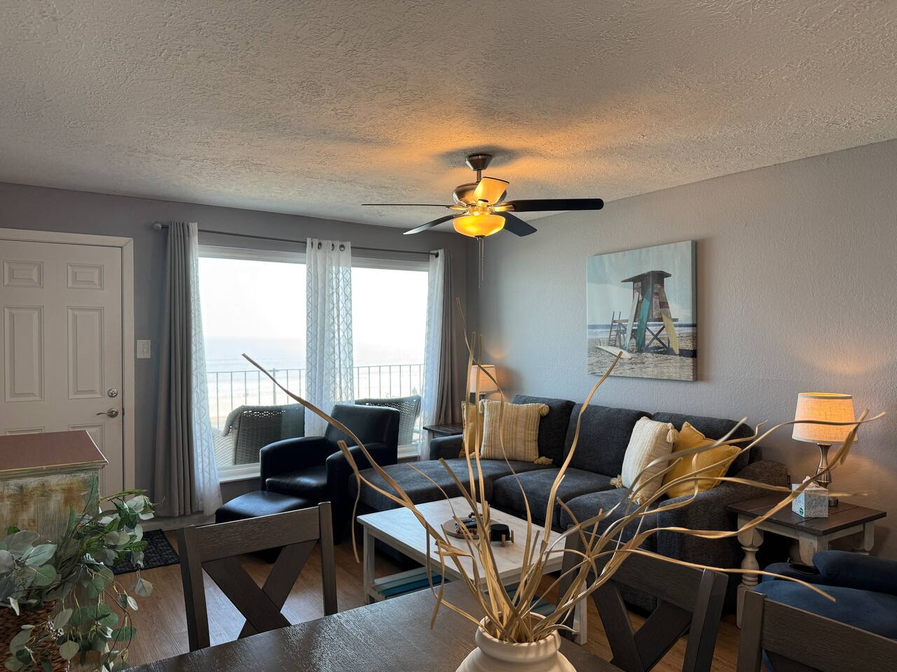 Oceanfront Condo with Stunning Views Enjoy your stay in our spacious 2-bedroom, 2-bath condo in Galveston. Take in ocean views from the balcony, living area, and primary bedroom while enjoying the amenities. There is a pool, a hot tub, tennis court/pickleball court , and BBQ area. 🌟Sleeps 6 🌟King bed 🌟queen bed 🌟sofa bed 🌟blow-up mattress 🌟Fully equipped kitchen 🌟Private furnished balcony 🌟Beach gear included – Towels, wagon, chairs, umbrella, ice chest