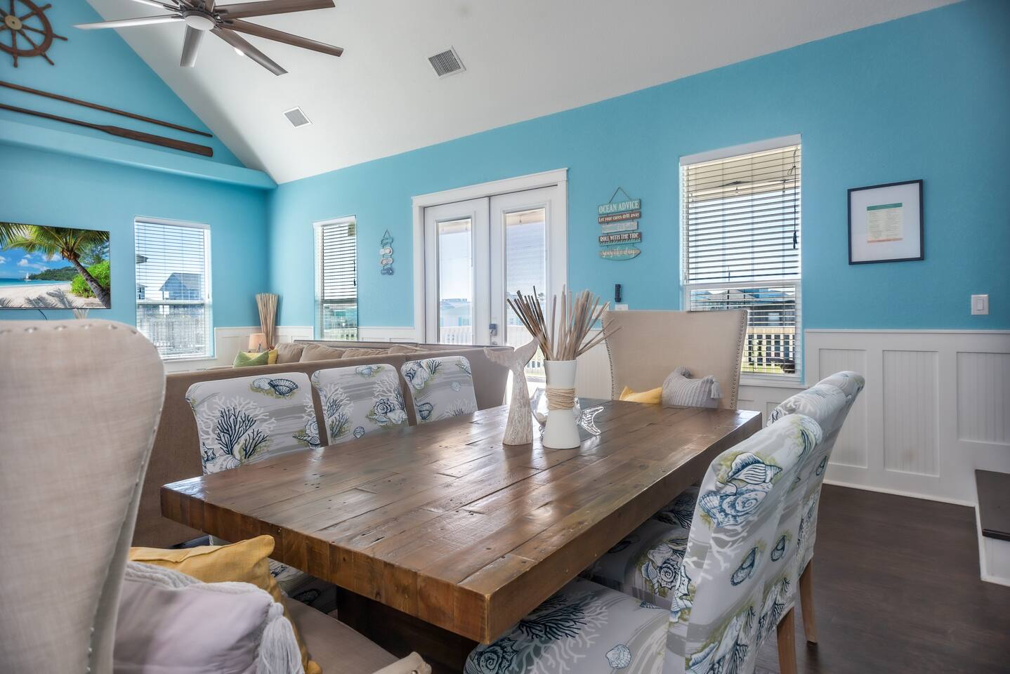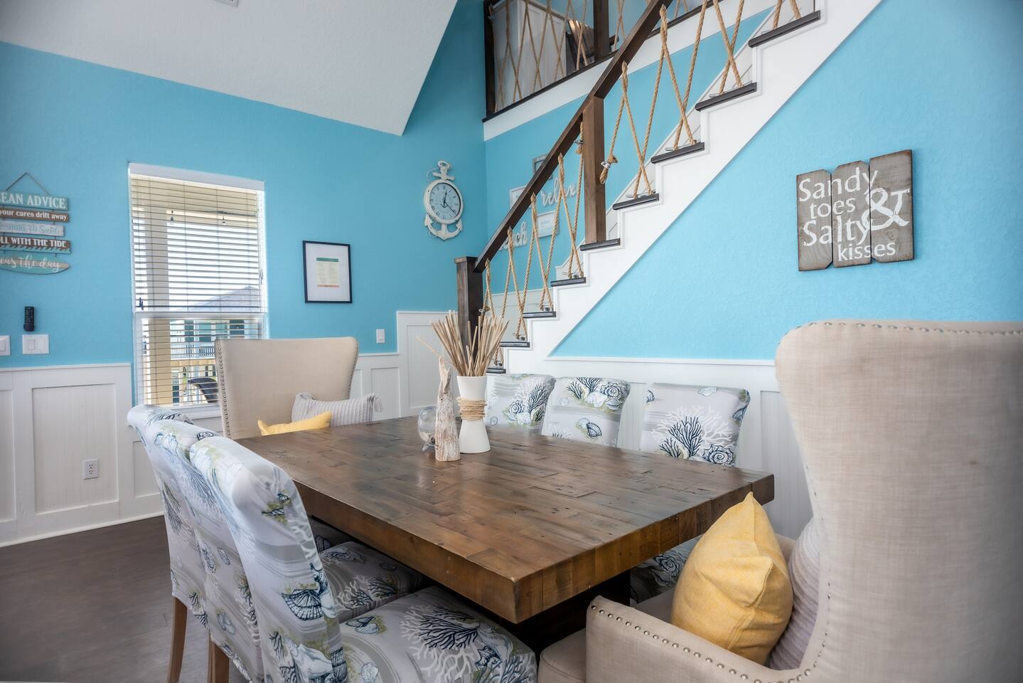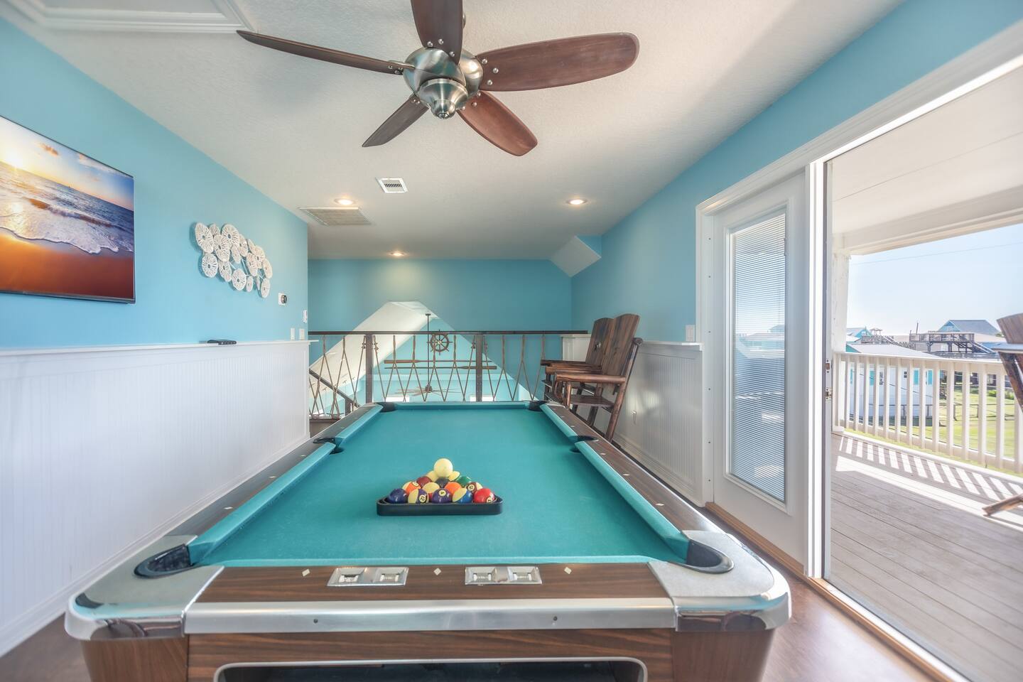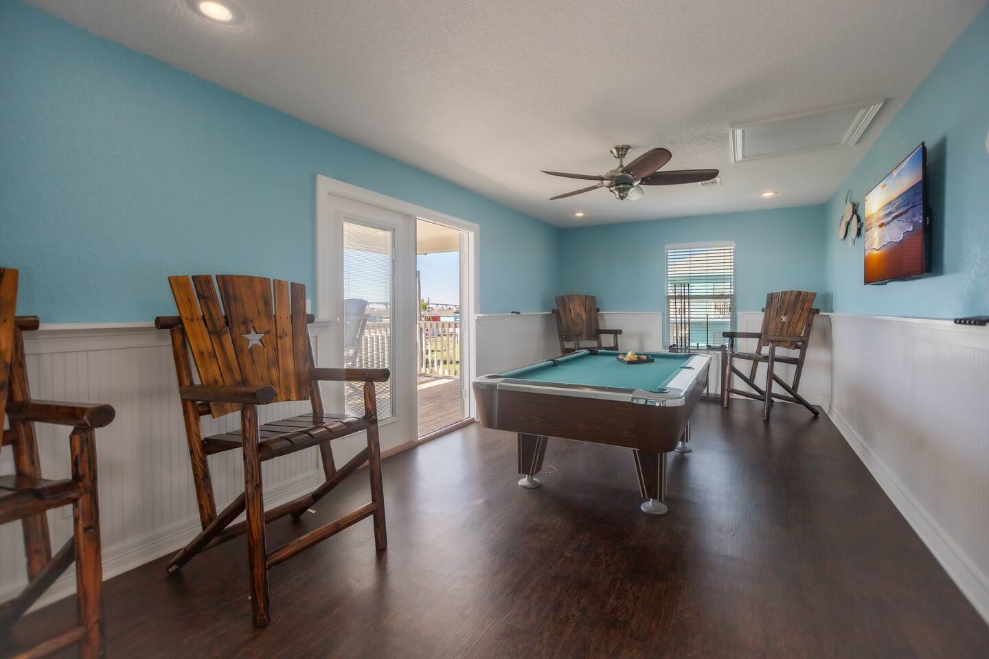 The Space • 4 spacious bedrooms: ⎯▹ Primary: King bed + ensuite ⎯▹ Bedroom 2: King bed ⎯▹ Bedroom 3: Queen bed ⎯▹ Bedroom 4: 3 bunk beds • 3.5 bathrooms w/ essentials • Fully equipped kitchen • 75” SmartTV • Game room w/ pool table • Private patio and balcony ~ EXPERIENCE OVERVIEW ~ • High-speed wifi • Steps to private beach • Fully fenced backyard w/ furniture • Beach chairs, toys, cart, and tent • Outdoor shower for easy clean-up • Smart TVs in every bedroom • Washer/dryer (detergent provided) ~ NEARBY ATTRACTIONS ~ » Surfside Beach → 3 min walk » Surfside Crabbing Pier → 6 min » Jetty Park → 5 min » Surfside Jetty → 8 min » Sea Center Texas → 20 min » Lake Jackson Historical Museum → 20 min » Brazosport Museum of Natural Science → 25 min » Freeport Municipal Golf Course → 30 min » San Bernard Wildlife Refuge → 35 min ~ NEARBY DINING ~ » Seahorse Bar & Grill (Seafood) → 5 min » Sharkies On The Beach » Jetty Shack (Burgers) → 7 min » Pier 30 (Seafood) → 8 min » Sweet T’s Diner (American) → 10 min » Beach Front Deck Bar & Grill (Seafood) → 12 min » The Fill Station (Tacos) → 18 min - ~ Frequently Asked Questions~ ➤ Is the area safe? Yes, Surfside Beach is a safe, family-friendly community with a relaxed vibe. ➤ Is this house good for business travelers? Yes! Enjoy high-speed Wi-Fi and quiet work areas for remote productivity. ➤ What beach essentials are provided? We include chairs, towels, a beach cart, toys, and a tent for your convenience. ♥ A NOTE FROM YOUR HOSTS Whether you’re here to relax, celebrate, or explore, we hope our home provides the perfect setting. Please don’t hesitate to reach out if you need anything! Sincerely, Your Host, Angie