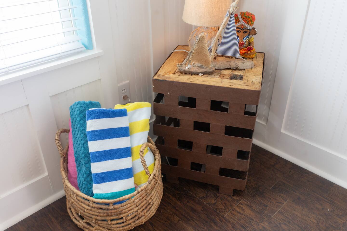 - Beach essentials Beach towels, umbrella, beach blanket, snorkeling gear