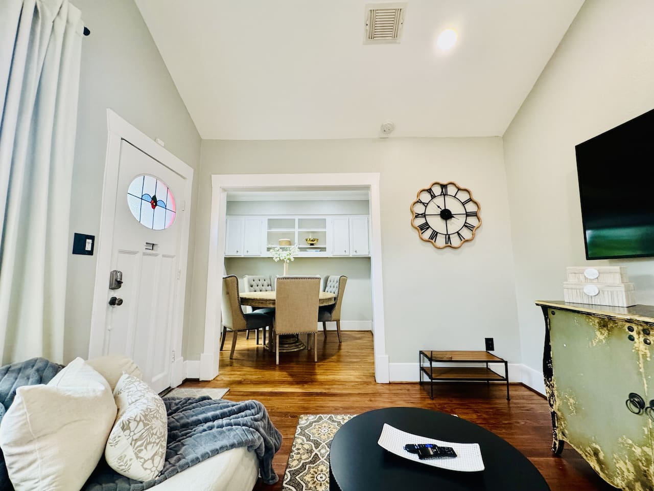 ✨Space: Built in 1940 and beautifully renovated in 2025, this charming and spacious 1,800+ sq ft home combines classic elegance with modern comfort. With a cozy, inviting atmosphere, The Holly House is the perfect retreat for those seeking peace and privacy. Enjoy the warmth of its vintage character with the convenience of updated amenities. ✨ Amenities: ➡️ 2 Comfortable Bedrooms – Perfect for restful nights 🛏️ ➡️ Fully Equipped Kitchen – Cook up a feast or quick meals 🍳 ➡️ Spacious Living Room – Relax in style 🛋️ ➡️ Smart TVs in Both Bedrooms & Living Room – Stream your favorites 📺 ➡️ Stand-Up Shower – Refresh and relax 🚿 ➡️ Privacy Fence & Gated Entry – Feel secure and secluded 🔒 ➡️ Private Outdoor Space – Ideal for relaxing or dining outdoors 🌳 ➡️ High-Speed Wi-Fi – Stay connected for work or leisure 📶 Galveston Island: 50 miles southeast. These attractions offer a variety of experiences, from shopping and dining to cultural sites and entertainment, all within a reasonable distance from your location. » NEAR BY ATTRACTIONS: » Downtown Houston → 5 miles » Midtown Houston → 5.5 miles » Memorial Park → 6 miles » River Oaks → 6 miles » Museum District → 6.5 miles » Minute Maid Park → 6.5 miles NEARBY HOSPITABLES: ➡️Texas Medical Center → 5 miles ➡️Texas Children's Hospital → 5 miles ➡️ MD Anderson Cancer Center → 8 miles ➡️Houston Methodist Hospital → 4.8 miles ➡️St. Luke’s Health – Texas Medical Center →5 miles ~ NEARBY DINING ~ » Space City Birria Tacos (Mexican Cuisine) –→ 10 minutes » North Italia (Italian Cuisine) →12 minutes » Perry’s Steakhouse & Grille (Steakhouse)→15 minutes » The Cheesecake Factory (American Cuisine)8 minutes » Liberty Kitchen & Oysterette( Seafood)→12 minutes » Bistro 555 (French Cuisine)→15 minutes » Sushi Raku (Sushi) →10 minutes » The Brisket House(Barbecue)→88 minutes ~ Frequently Asked Questions ~ ➤ Is the area safe? Absolutely! The house is in a secure gate and on-site security camara ➤ Is this house good for business travelers? Yes! High-speed WiFi and a quiet atmosphere make it great for work. ➤ Do you provide parking? Yes, two unassigned parking spots are included in the gated lot. The Holly House is the perfect blend of comfort and convenience, offering a peaceful escape with all the amenities you need for a memorable stay! 🌟 ♥ A NOTE FROM YOUR HOSTS We’re thrilled to provide you with a welcoming and relaxing space to enjoy Houston's attractions. Whether you’re exploring the area or enjoying the relaxing home, we’re here to ensure your stay is comfortable. Please don’t hesitate to reach out if you have any questions or need recommendations! Sincerely, Your Host, Angie